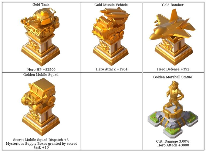 While bronze and silver decorations provide fundamental stat enhancements, gold decorations offer more potent and varied boosts that significantly aid hero performance and city development.