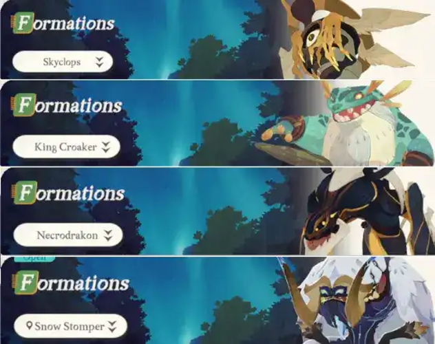 At the beginning, boss choices are quite limited, featuring the initial set of bosses introduced in the game: Skyclops, King Croaker, Necrodrakon, and Snow Stomper. Each of these bosses imposes specific team-building constraints that influence strategic composition.