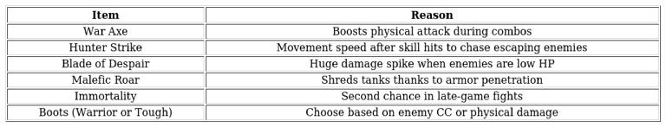 Always look for opportunities to engage alone, activating your passive for increased damage. Focus on taking down squishy opponents such as marksmen and mages to secure kills and snowball momentum. If enemies attempt to escape, cancel frenzy strike early to reposition swiftly and maintain pressure.