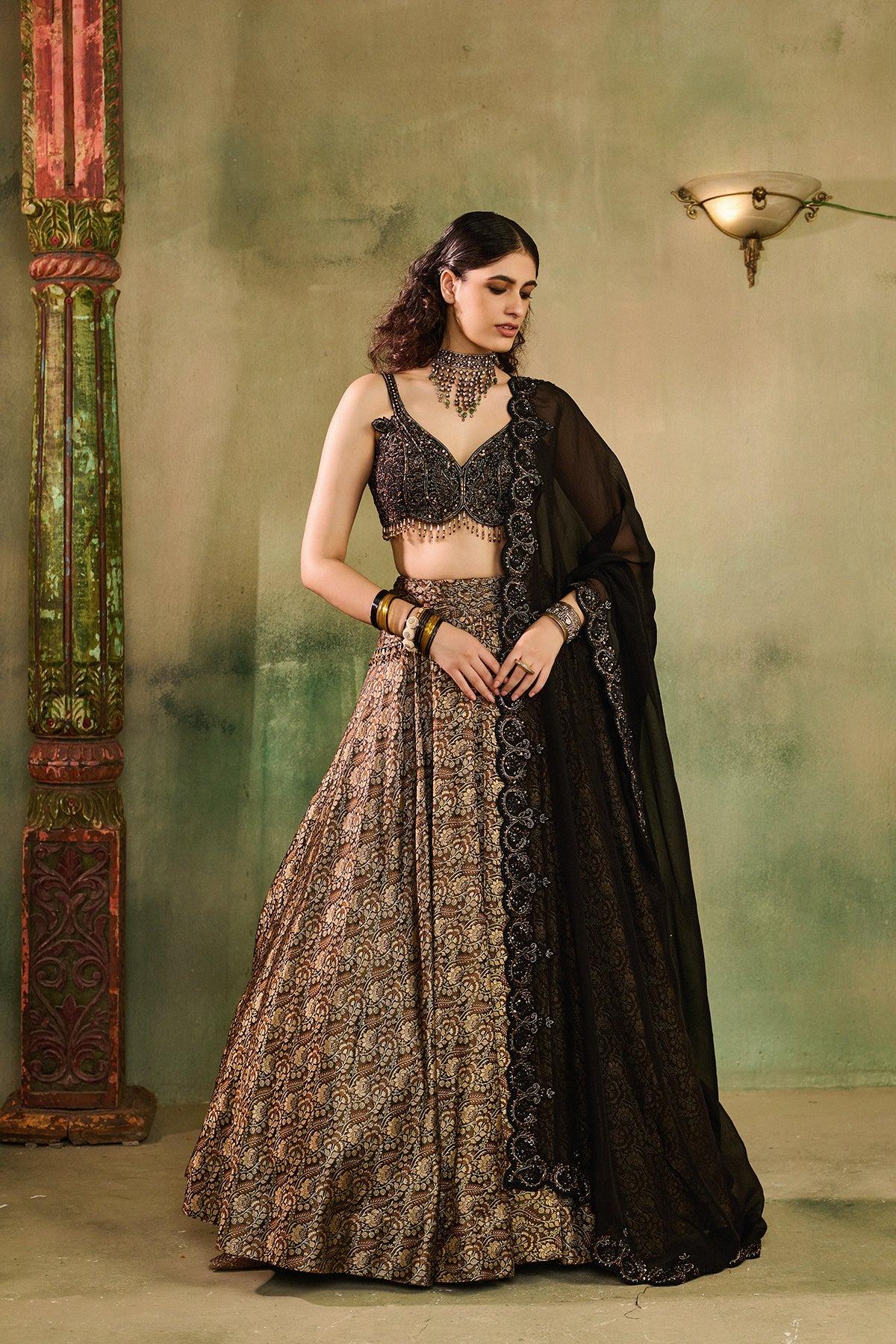 Banaras (Varanasi) has long been the heart of India’s textile heritage, known for its handwoven silks that shimmer with gold and silver threads. A Banarasi lehenga carries within its fabric the stories of artisans whose looms have sung for generations. Each weave represents days of meticulous handwork, each motif an homage to cultural legacy.