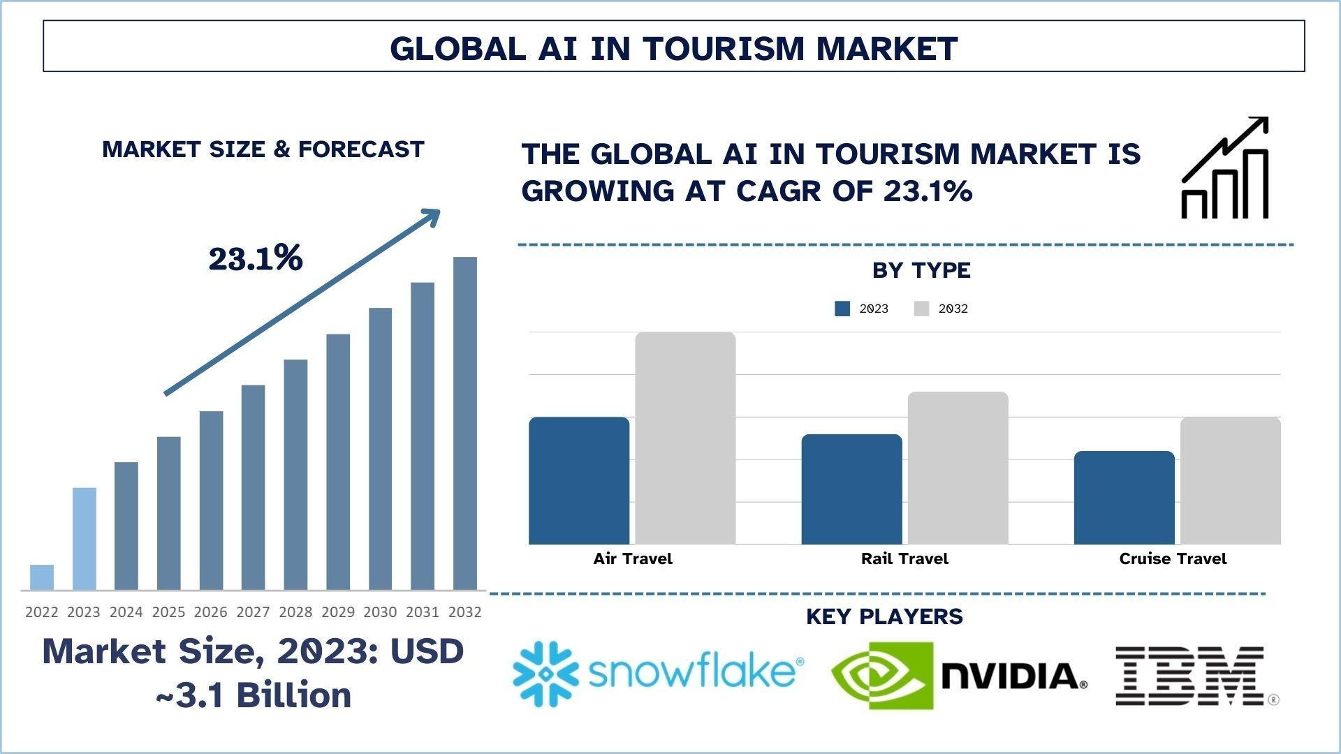 According to a new report by UnivDatos, AI in Tourism Market is expected to reach USD Billion in 2032 by growing at a CAGR of 23.1%. Artificial intelligence technologies deployed in tourism services prioritize experience optimization while optimizing operational resources to generate better decision outcomes throughout the tourism sector. Travel and tourism businesses use AI-powered applications including customer service chatbots alongside machine learning recommendation engines, customer demand forecasting programs, and facial recognition hardware. Travel companies along with hotels airlines and tourism boards can maximize their efficiency alongside increasing customer engagement and retail pricing optimization through automated big data processing with natural language capabilities.