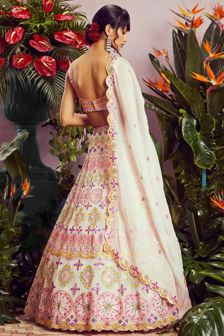 - Design Variations: High-low hemlines, caped lehengas, and peplum blouses introduce modern silhouettes, while prints and color-blocked versions showcase unique style statements.