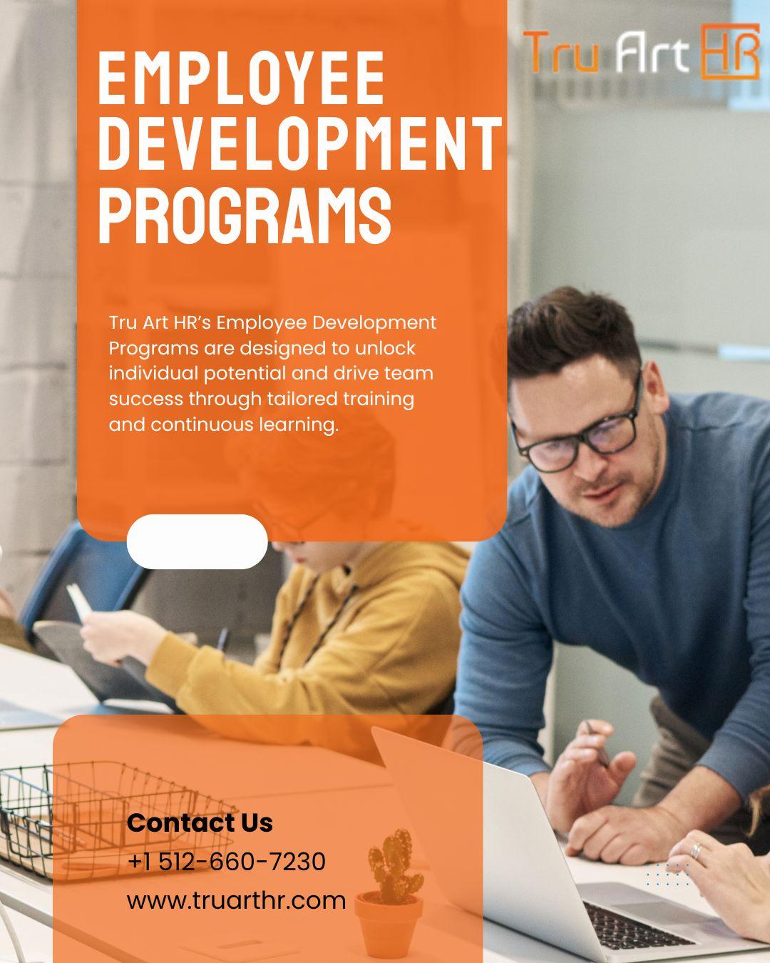 Tru Art HR creates Employee Development Programs that elevate talent and boost engagement. We provide strategic support through leadership coaching, skill assessments, and learning paths. Our Employee Development Programs are data-driven and people-first. We align development with organizational success. Visit our website now to learn more.